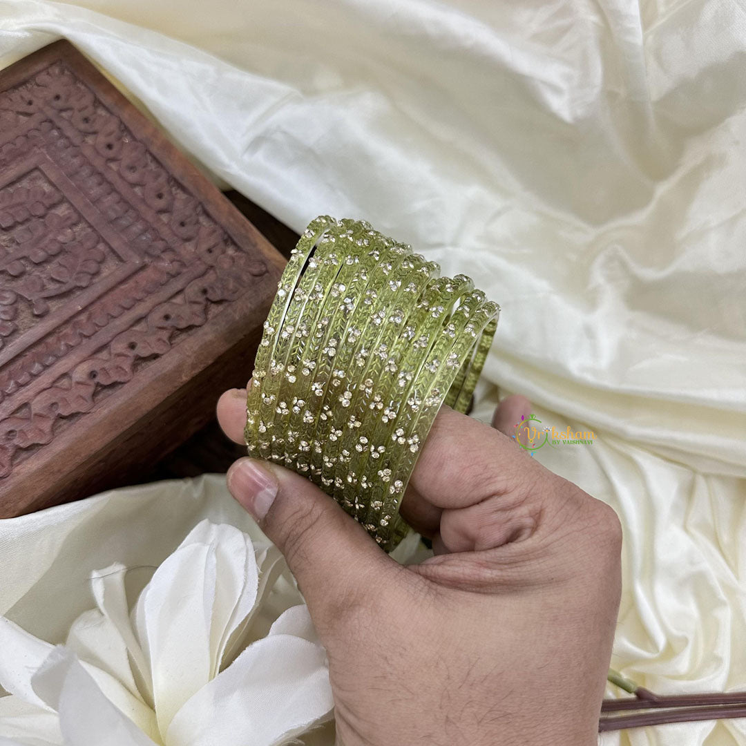 Pista Green BKS Thin Glass Bangle-Set of 12-G14447