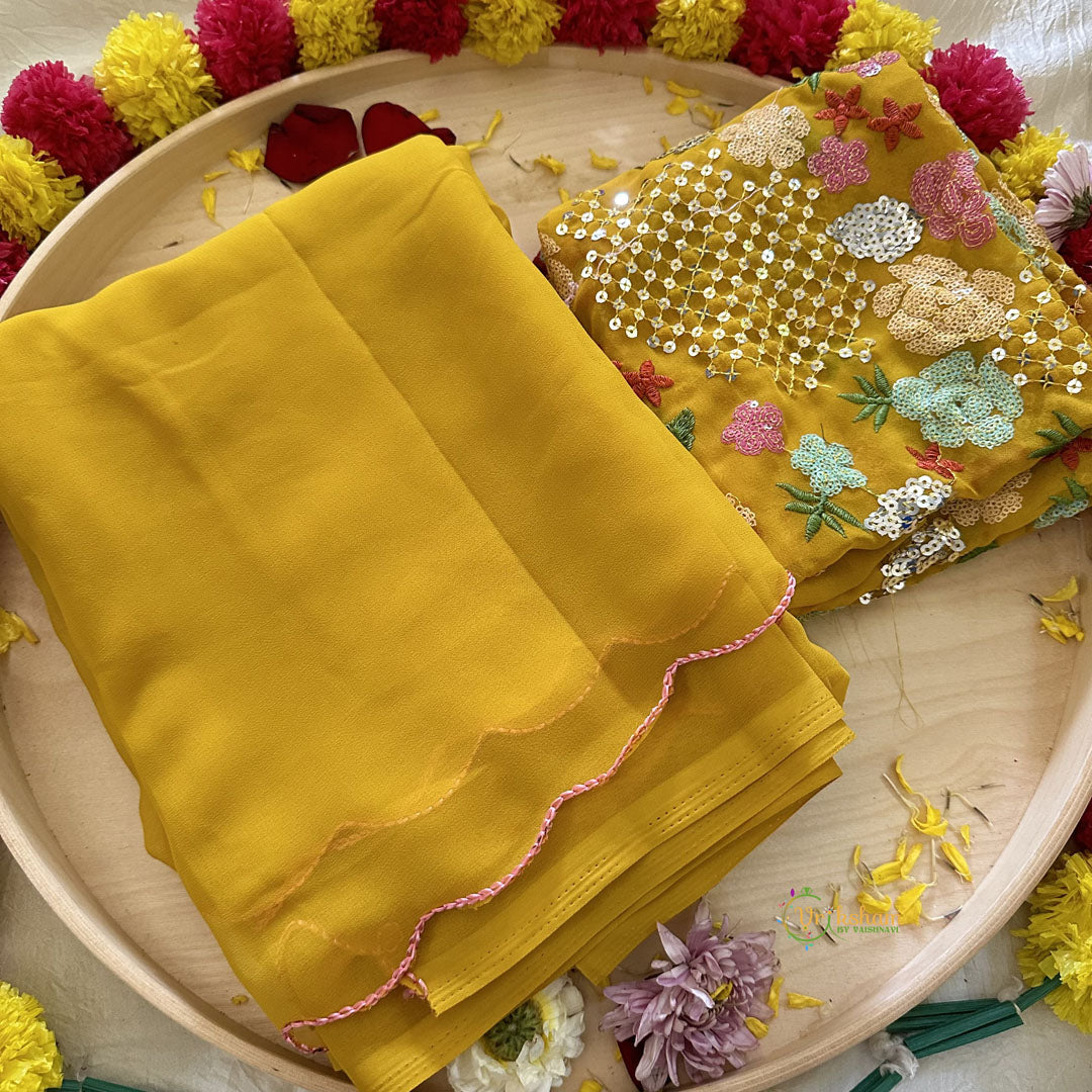 Plain Chiffon Saree with designer thread and sequin work blouse– Scallop border fancy designer saree – soft organza material.