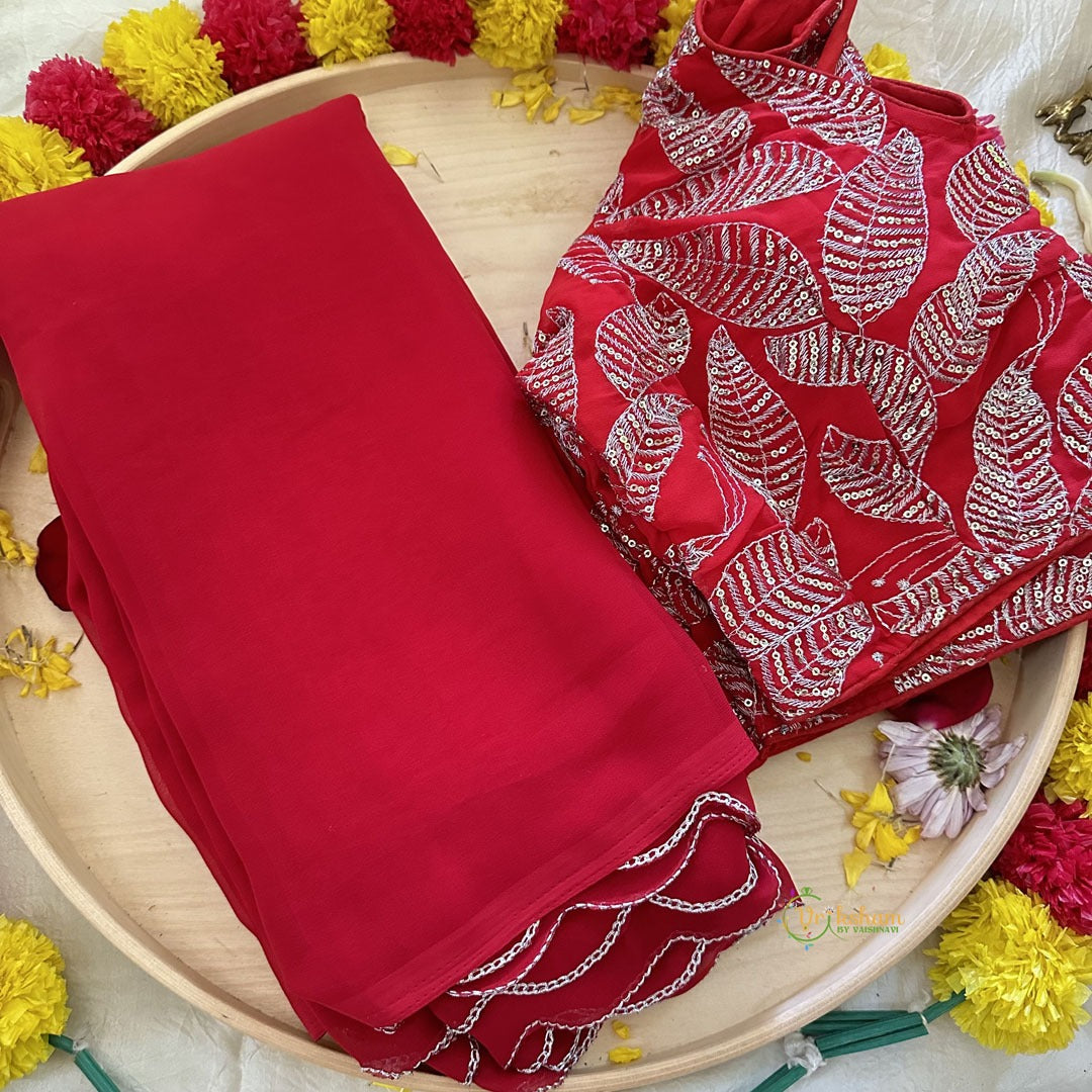 Plain Chiffon Saree with designer thread and sequin work blouse– Scallop border fancy designer saree – soft Chiffon material.