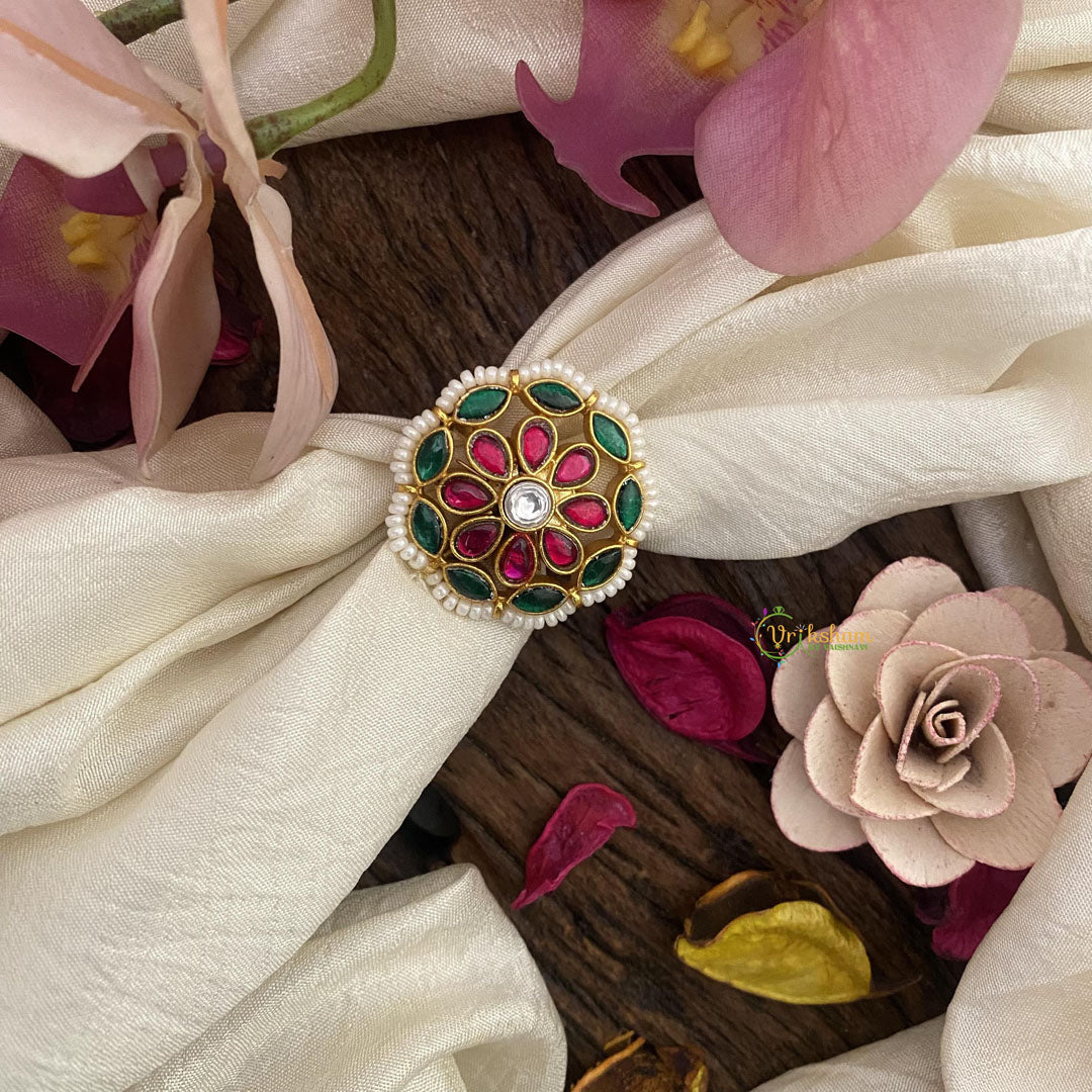 Precious Floral Jadau Kundan Finger Ring-Red Green-J2551
