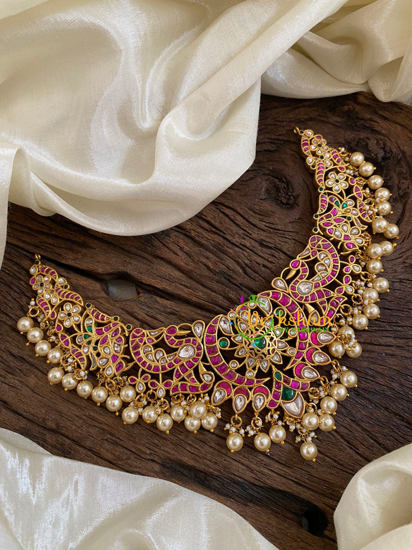 Precious Jadau Kundan Choker Short Neckpiece - Premium quality polish coin style with precious kundan workwith foral pattern; pearl finish.