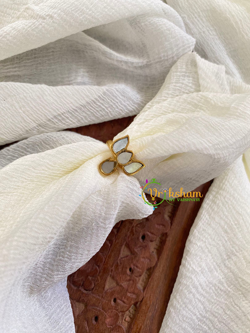 Precious Jadau Kundan Finger Ring-White Lotus 3-J1541