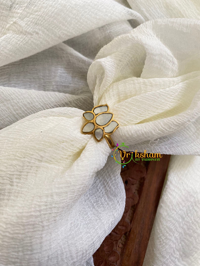 Precious Jadau Kundan Finger Ring-White Lotus-J1549
