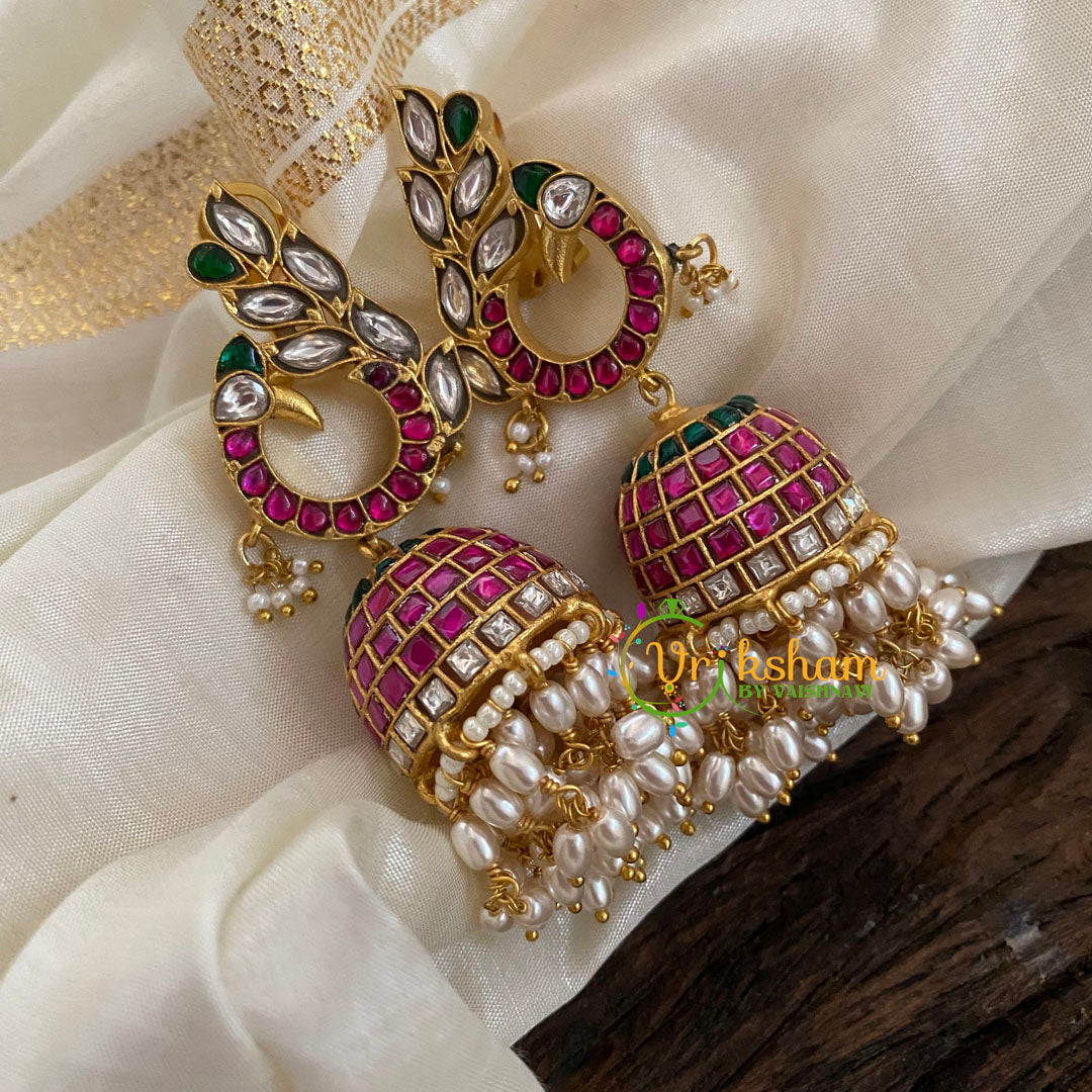 Precious Jadau Kundan Jhumkas – is one of our highest quality royal jewellery; handmade by artisans; made of precious kundan.. This jewelery boasts the design and quality of a real silver jhumkas but at an afforable price.