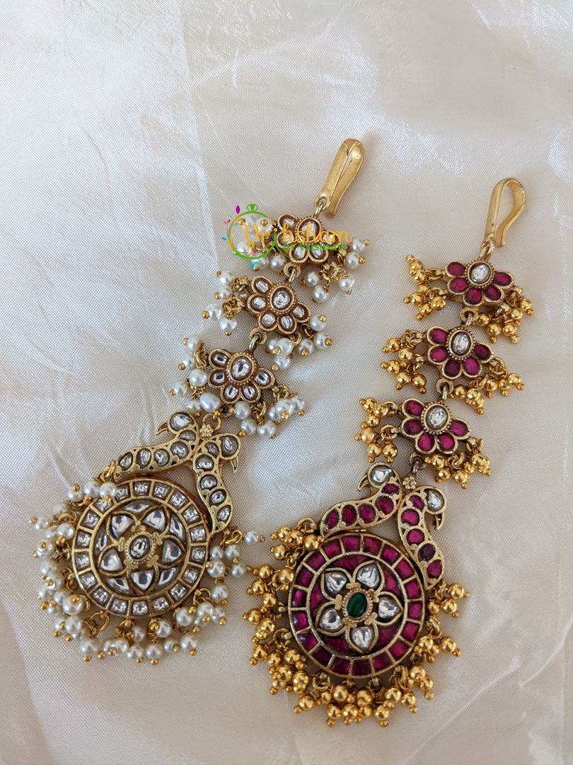 Precious Jadau Kundan Maang Tikka – single strand kundan and kemp set with artificial beads or pearls -one of our highest quality royal jewellery; handmade by artisans; this boasts the design and quality of a real silver(but not silver) at an afforable price.