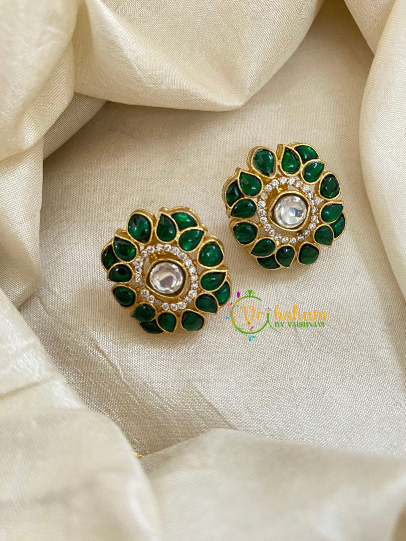 Precious Jadau Kundan Studs -Premium finish with kundan stones and Jadau Kundan work floral stud.