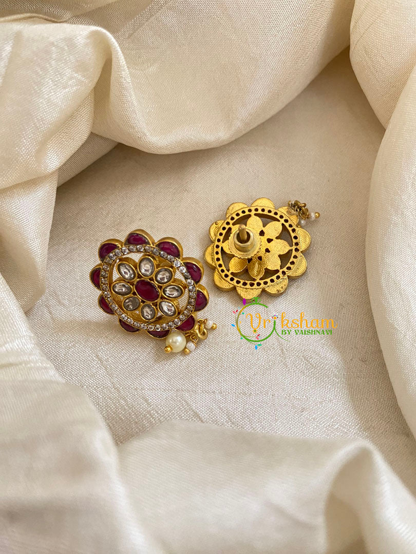 Precious Jadau Kundan Studs -Premium finish with kundan stones and Jadau Kundan work floral stud with pearl finish.