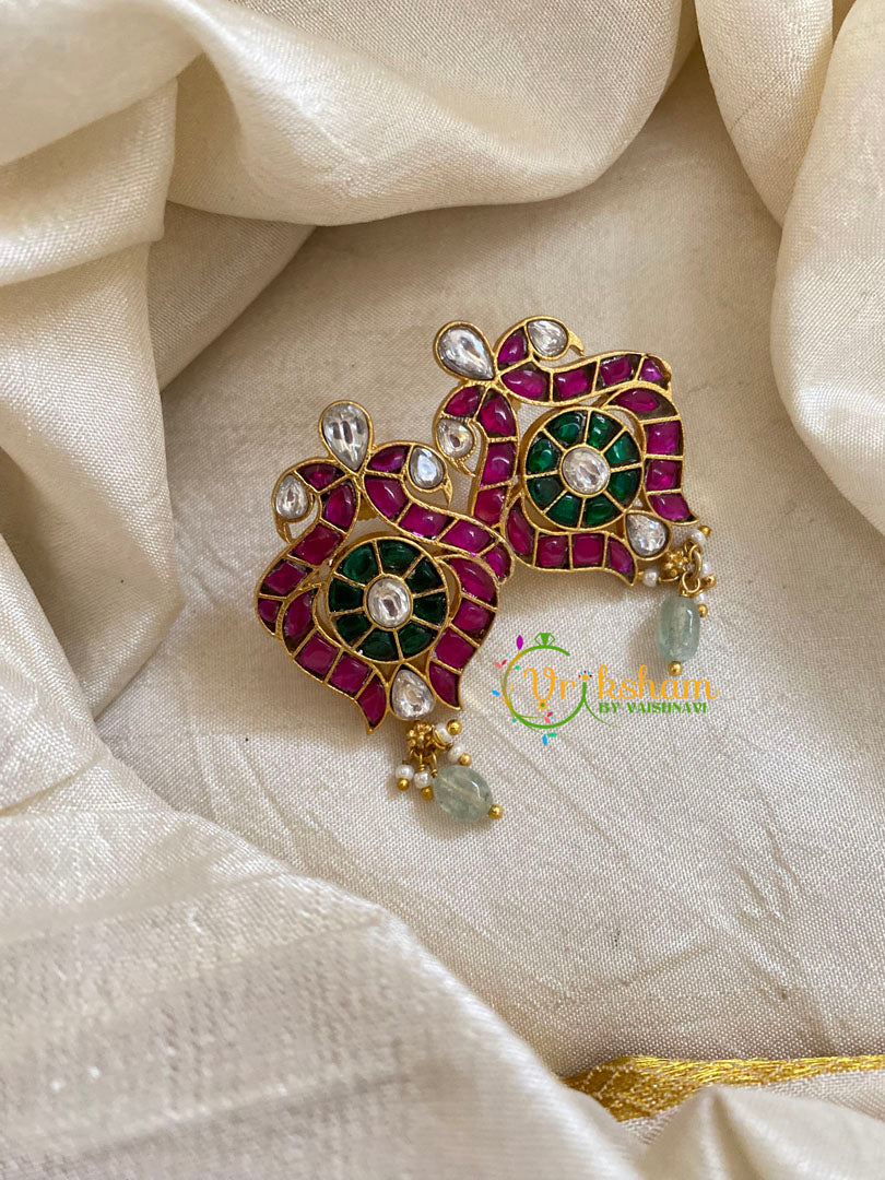 Precious Jadau Kundan Studs -Dual Peacocok-Pastel Green Bead-J1469