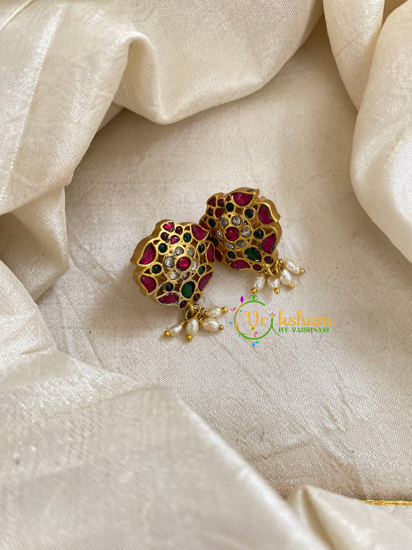 Precious Jadau Kundan Studs -Royal-Rice Pearls-J1470