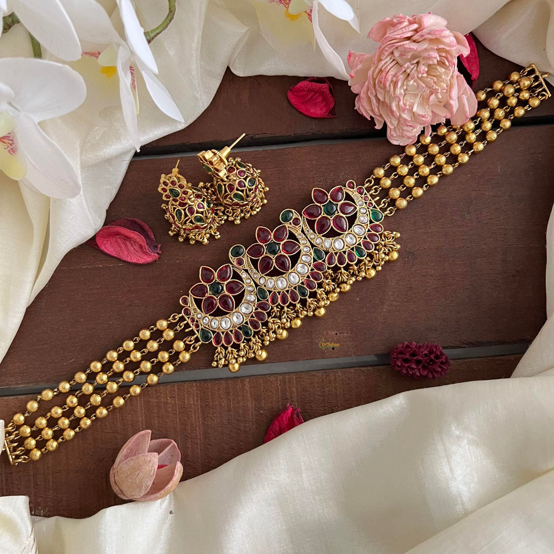 MAKE MATERIAL - This Choker is made of Copper and brass with imitation golden or white pearls and stones.