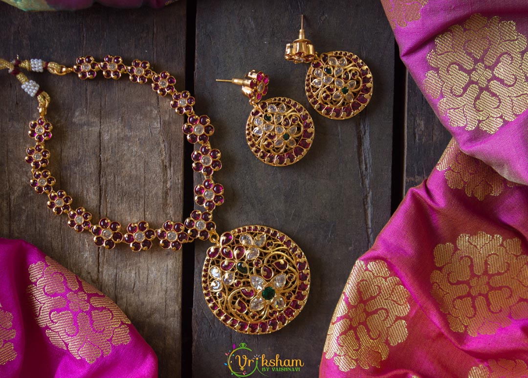 Precious Kemp full stoned Choker - Red-Green with earrings