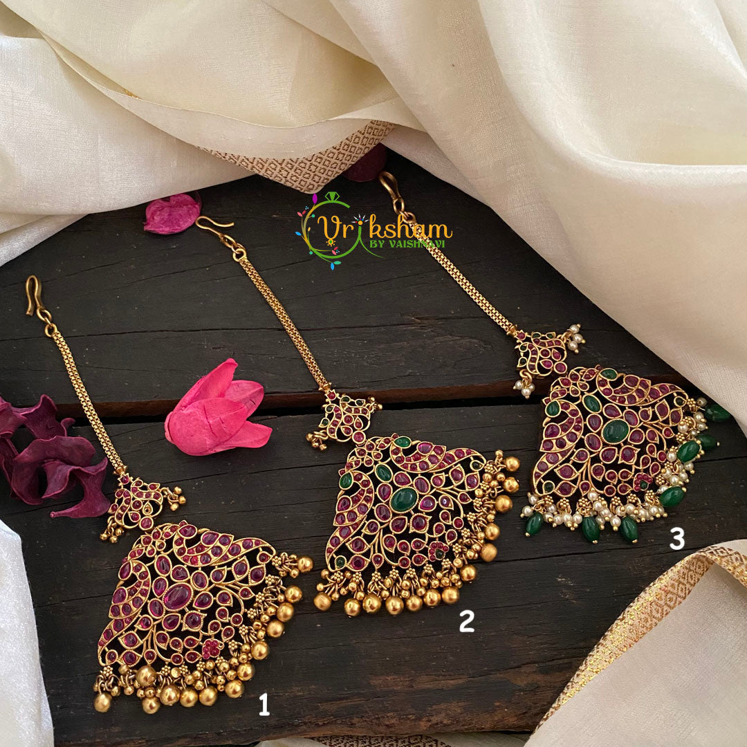 Precious Kemp Maang Tikka -The most sought after bridal tikkas in all sizes is available now. These are center tikkas which modern brides recently have been preferring more along with their wedding jewelery rather than the double sided tikka/nethi chutis.
