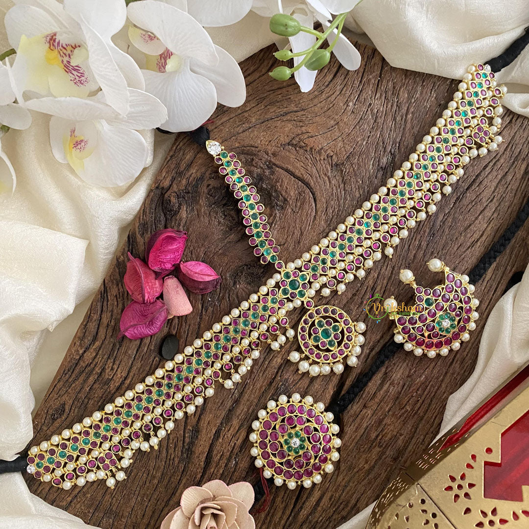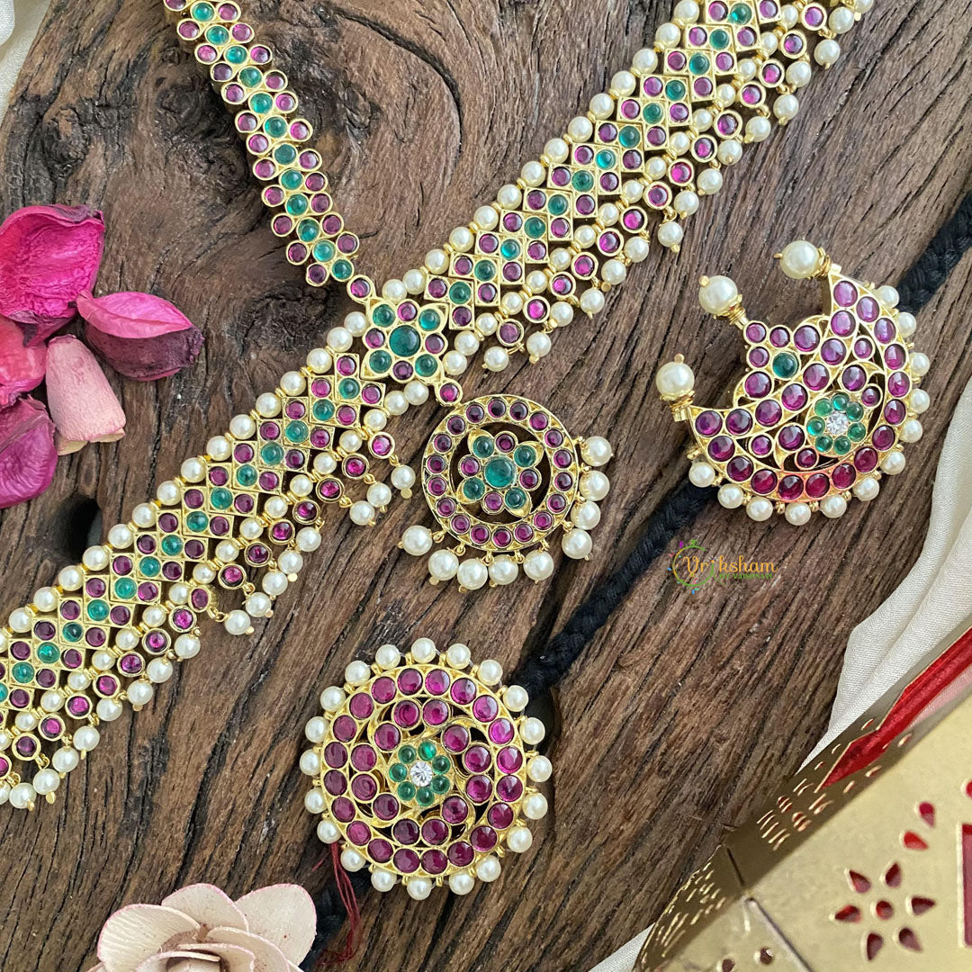 Elevate your look with our Kemp Mang Tikka - With Chandran Suriyan-G15068. This stunning piece features a double-sided design, combining elegance and versatility. Adorned with Chandran Suriyan gemstones, it adds a touch of sophistication to any outfit. Perfect for any occasion, make a statement with this premium accessory.