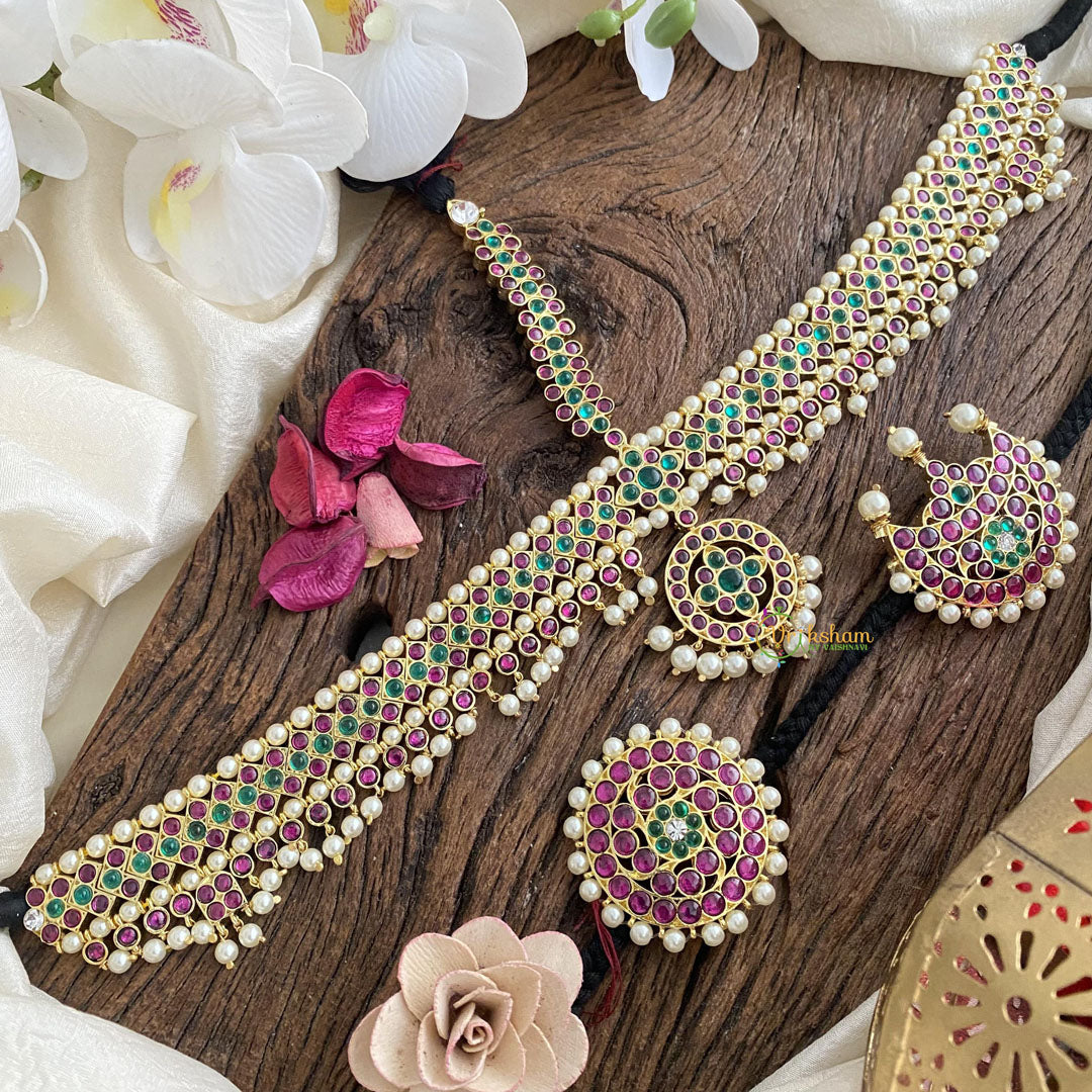 MAKE MATERIAL – This beautiful Kemp Tikka with chandran suriyan. is made of copper and brass with Traditional imitation Kemp Stones