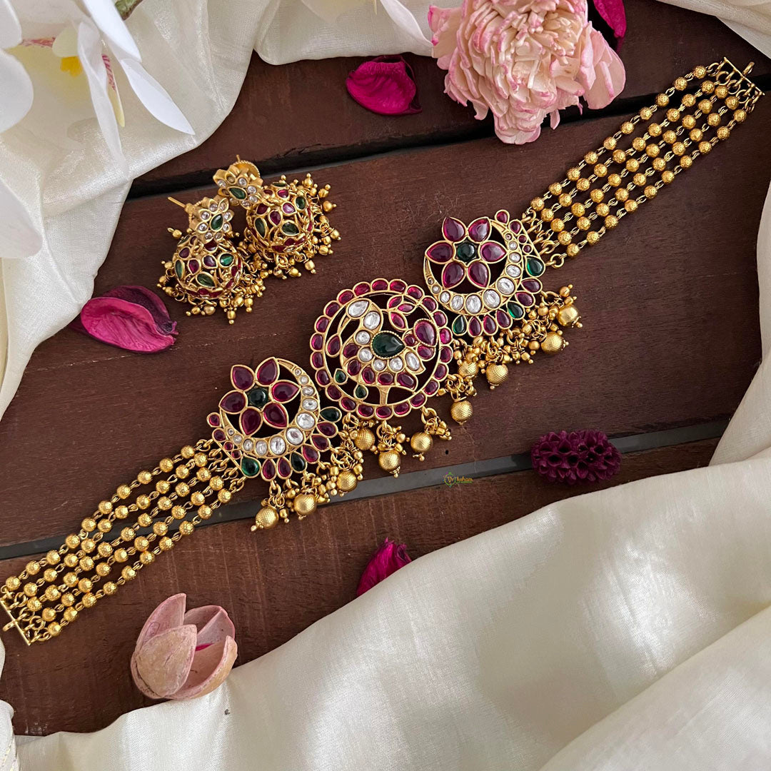 Elevate any outfit with the luxurious Precious Kemp Peacock High Neck Choker. Embellished with gold beads and featuring a stunning peacock design, this choker exudes sophistication and exclusivity. Add a touch of glamour to your style with this exquisite piece.