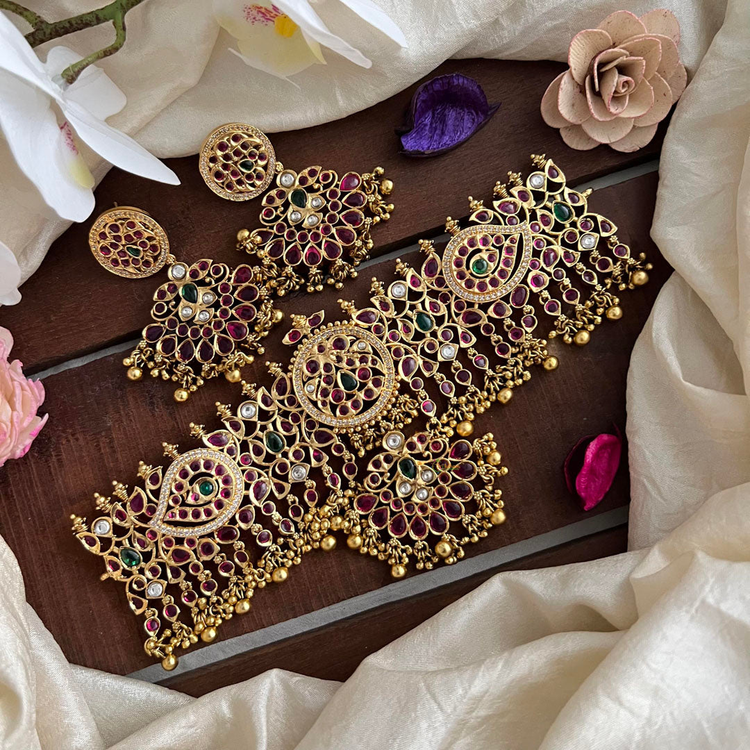 Introducing our exquisite Precious Kemp Stone High Neck Choker, adorned with Gold Beads. Elevate your jewelry collection with this luxurious piece, exuding elegance and sophistication. The precious Kemp stones add a touch of exclusivity to this stunning choker. A true gem for the discerning fashionista.