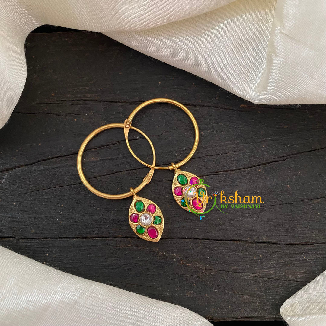 Precious Kundan Jadau Earrings -Hoops -Tilak Red Green -J794