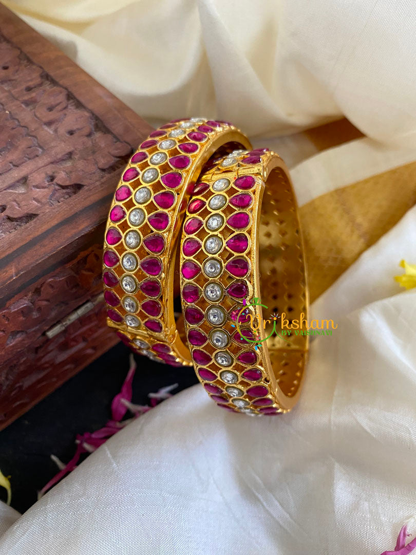 Precious Kundan Jadau Screw Bangle-White Pink -one of our highest quality jewelry hand made by our artisans, boasts the design and quality of a real silver choker (but not silver) at an afforable price.
