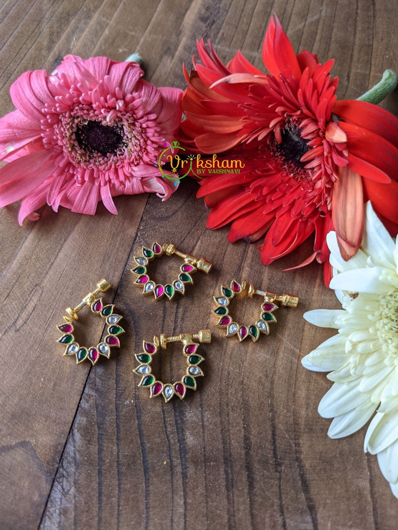 Precious Kundan Nath Golden Naths/Nose ring ( Non Pierced Nose rings or naths). Jadau kundan Nath with pink white and green stone work.
