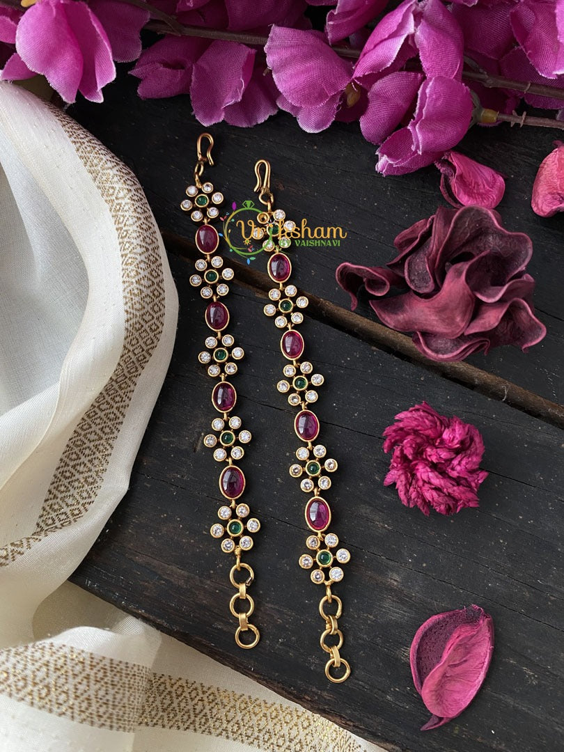 Premium AD stone Single Strand Maatil -floral pattern stone maatil/maatal ear chain.