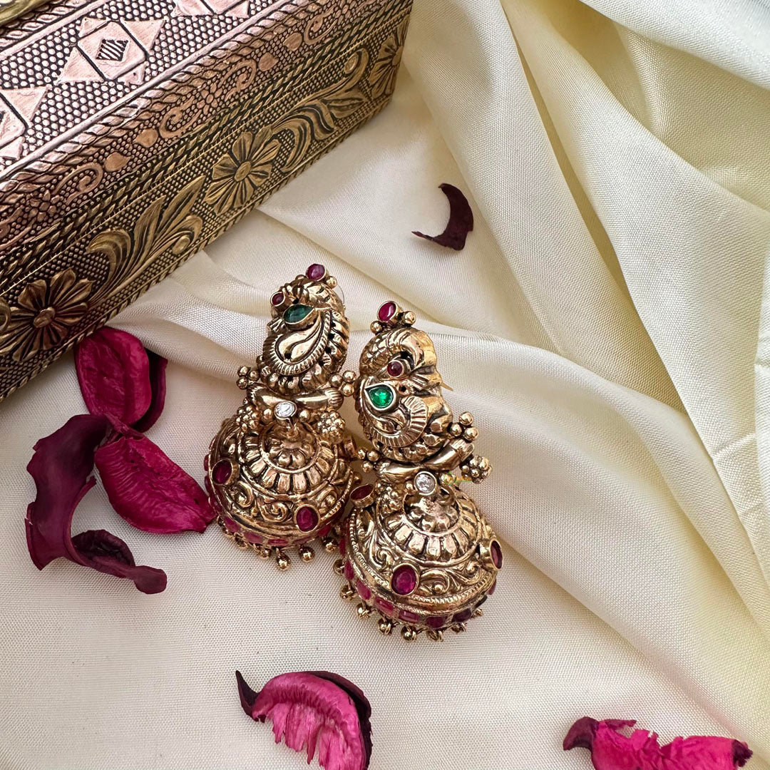 Indulge in elegance with our Premium 1 gm Gold Peacock Jhumka. Crafted with intricate peacock design and adorned with AD Stone red, this jhumka exudes luxury and sophistication. Elevate your style and embrace the opulence of our 1 gm gold collection.