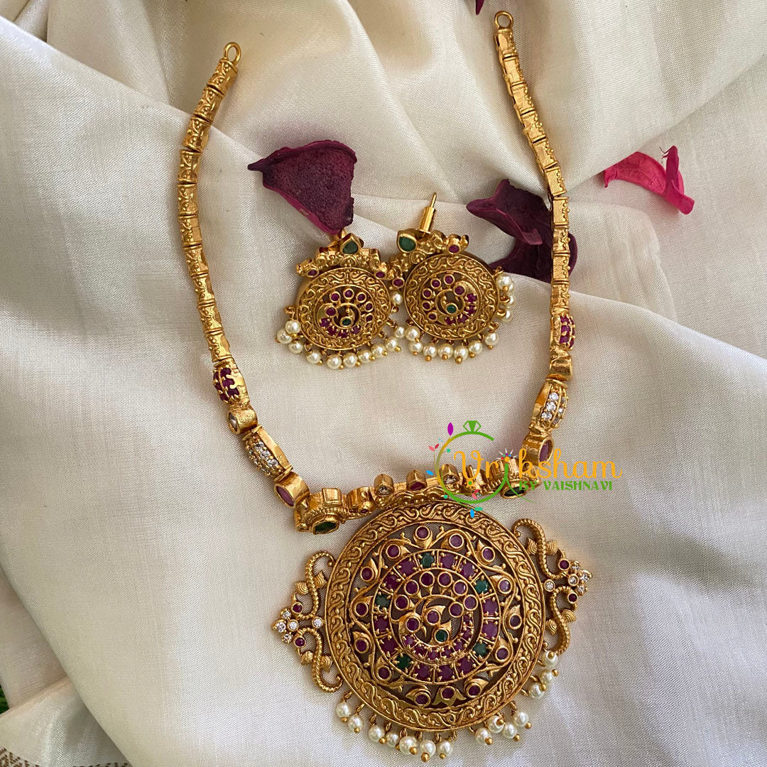 For similar neckpieces kind visit, https://vrikshamindia.com/product-category/golden-jewellery/short-neckpieces/