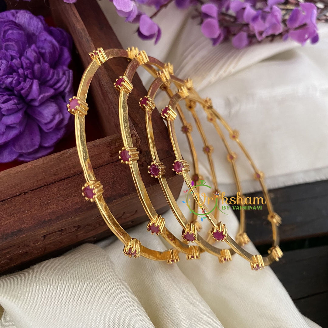 Premium AD Stone Bangles -Red Dots– Gold look alike polish; AD stone studded festive wear bangles; Doesn’t come as individual pieces.