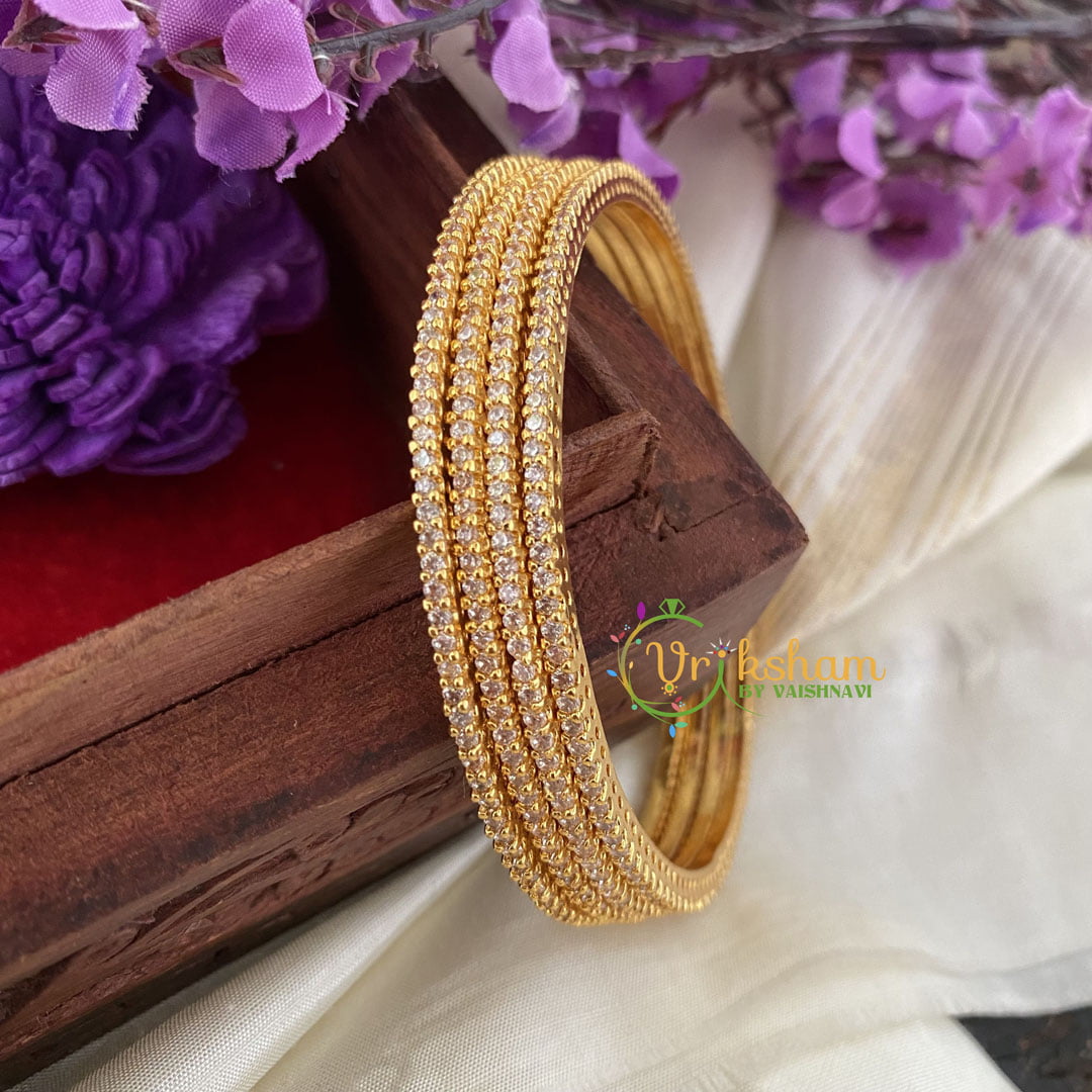 AD Stone Bangles –4 individual bangles Gold look alike polish; AD stone studded festive wear bangles; Doesn’t come as individual pieces.