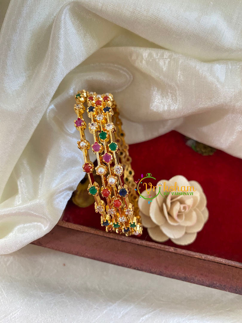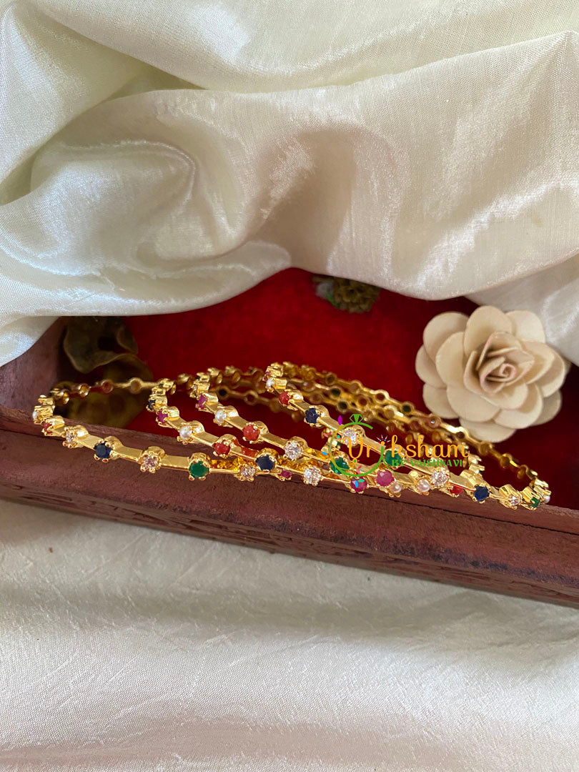 Premium AD Stone Bridal Bangle with - Navarathna type multicolor AD stone studded antique look festive bangles , Comes as pair only. Navarathna type multicolor stone bangles.