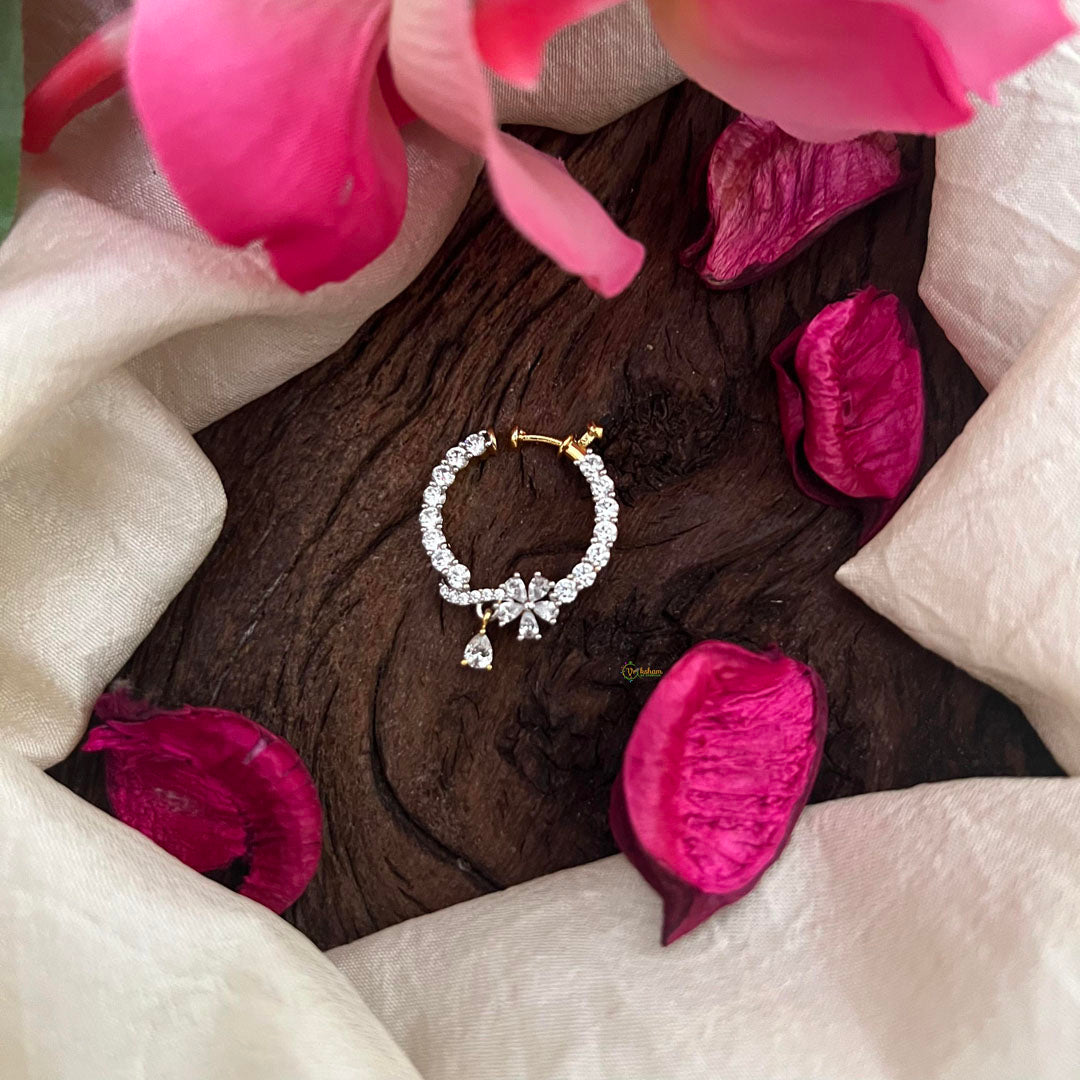 Elevate your style with our Premium AD Stone Ganga Jamuna Style Nath / Nose pin. This exquisite piece features sparkling white AD stones, creating a timeless and luxurious look. Perfect for any occasion, this unique nose pin is sure to turn heads and add a touch of elegance to your ensemble.
