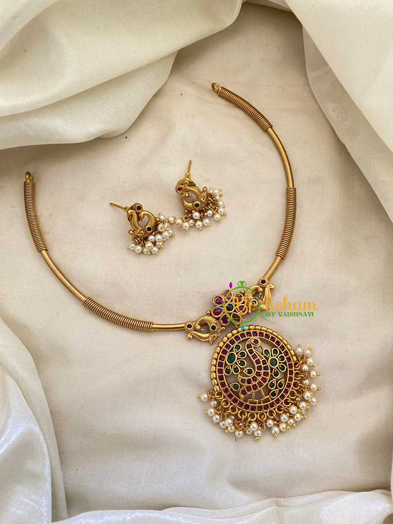 Premium Temple Hasli Choker - premium quality AD Stone studded pendant hasli short neckpiece, comes with matching earrings.