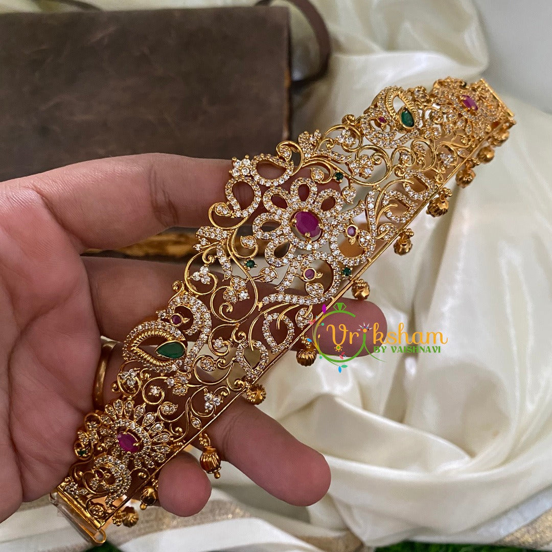 Premium AD stone Kid's Hipbelt– AD stone studded peacock and floral patterned hipbelt with golden bead finish -Kid’s size.