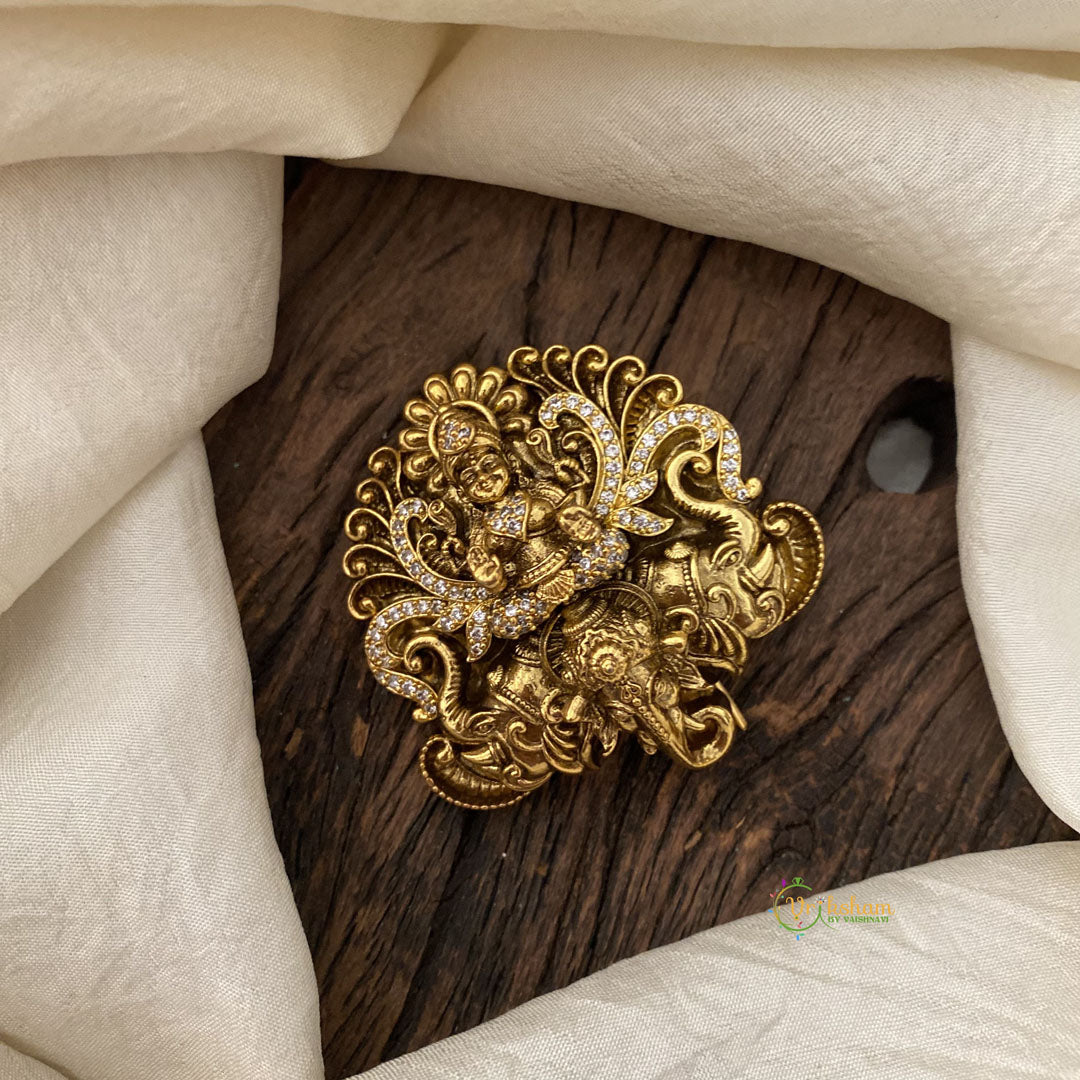 Premium AD Stone Lakshmi Haathi Bun Billai- hair accessory for festive braids and bun hairstyling.