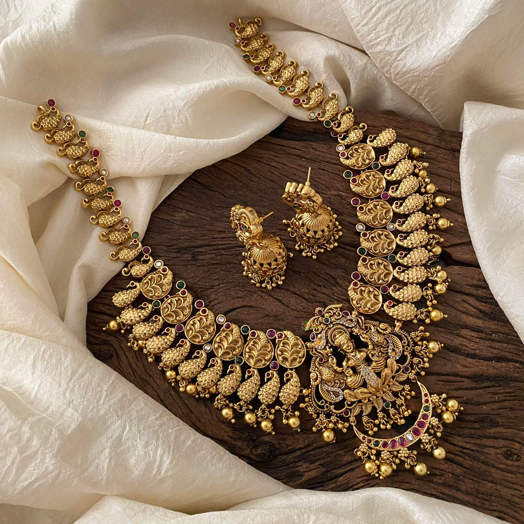 For more such pieces visit, https://vrikshamindia.com/product-category/golden-jewellery/long-neckpieces/