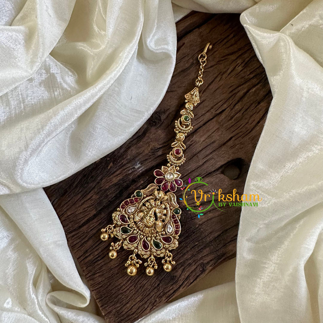 Premium AD Stone Maang Tikka -Peacock- Gold Bead-G10517