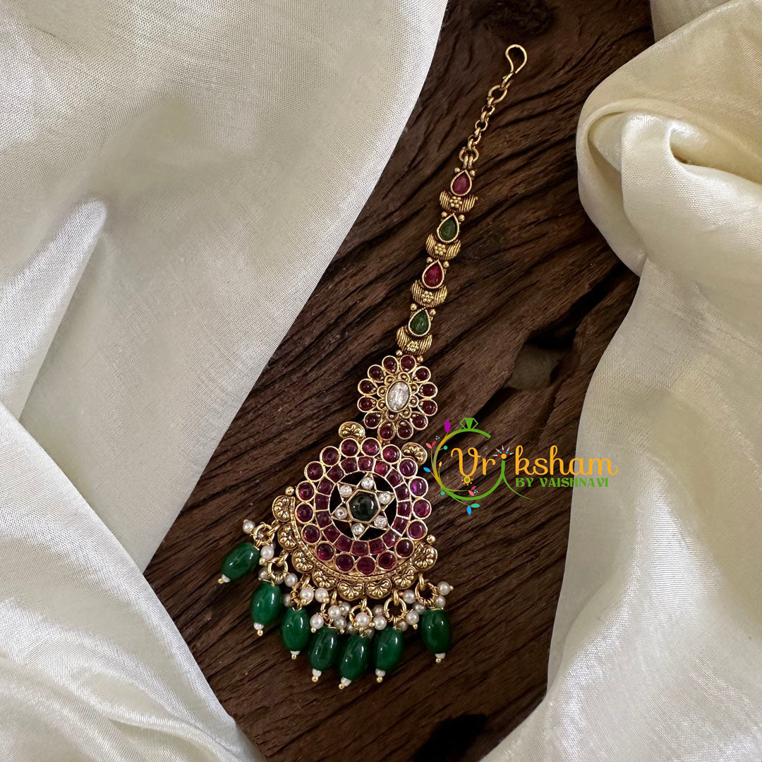 Premium AD Stone Maang Tikka -Green Bead-G10591