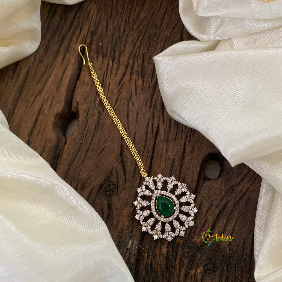Premium AD Stone Maang Tikka-Green-G10840