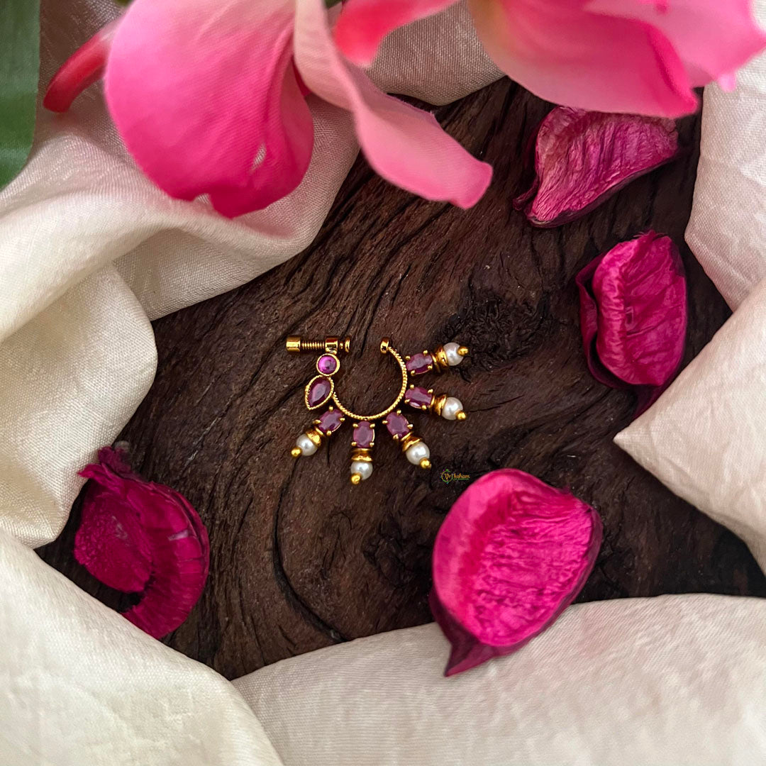Premium AD Stone Parrot Nath / Nose pin-Red-Pearl-G13905