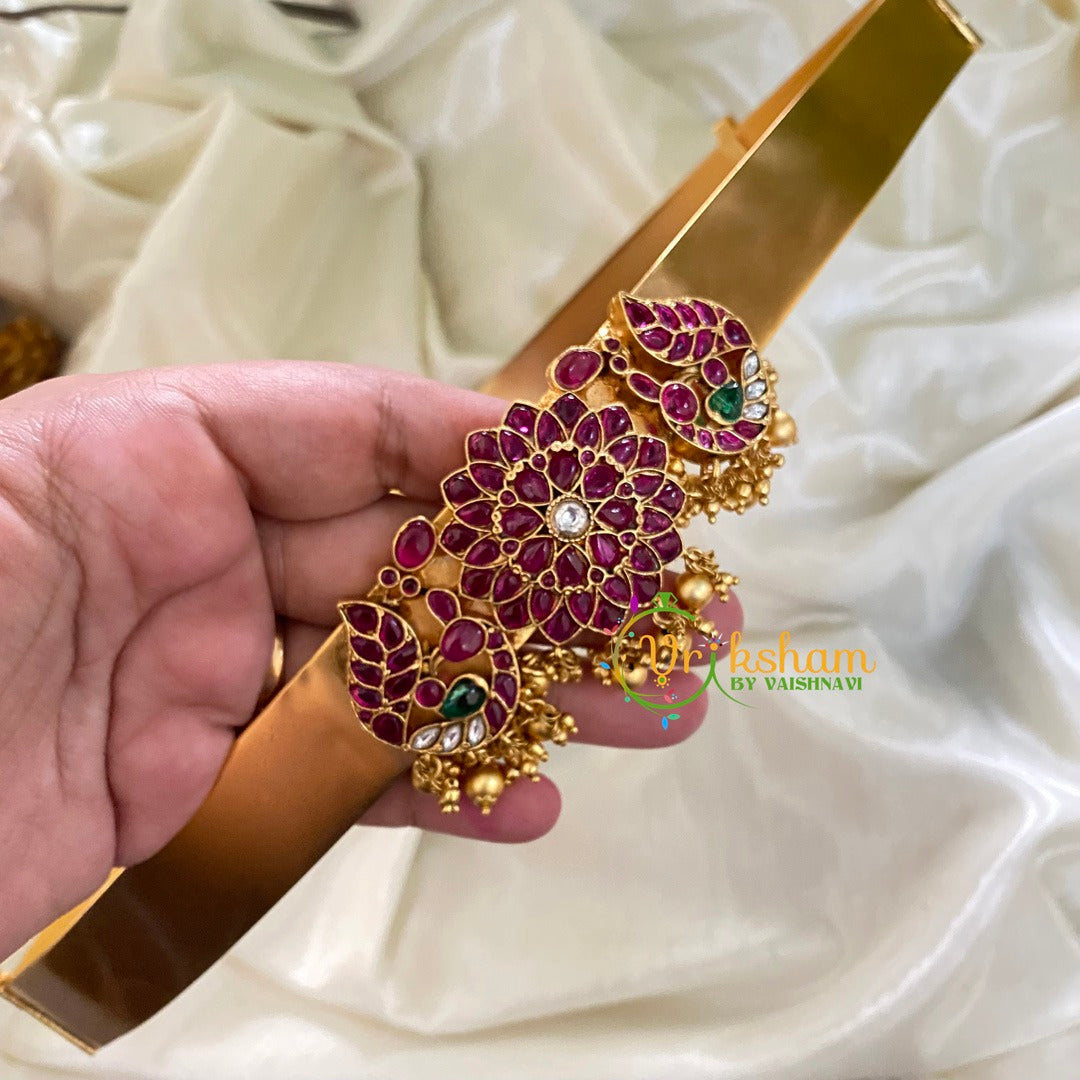 Premium AD Stone Pendant Plain Hipbelt-Pearl Studded on the top -Elegant peacock and floral centre pattern design plain Hipbelt.