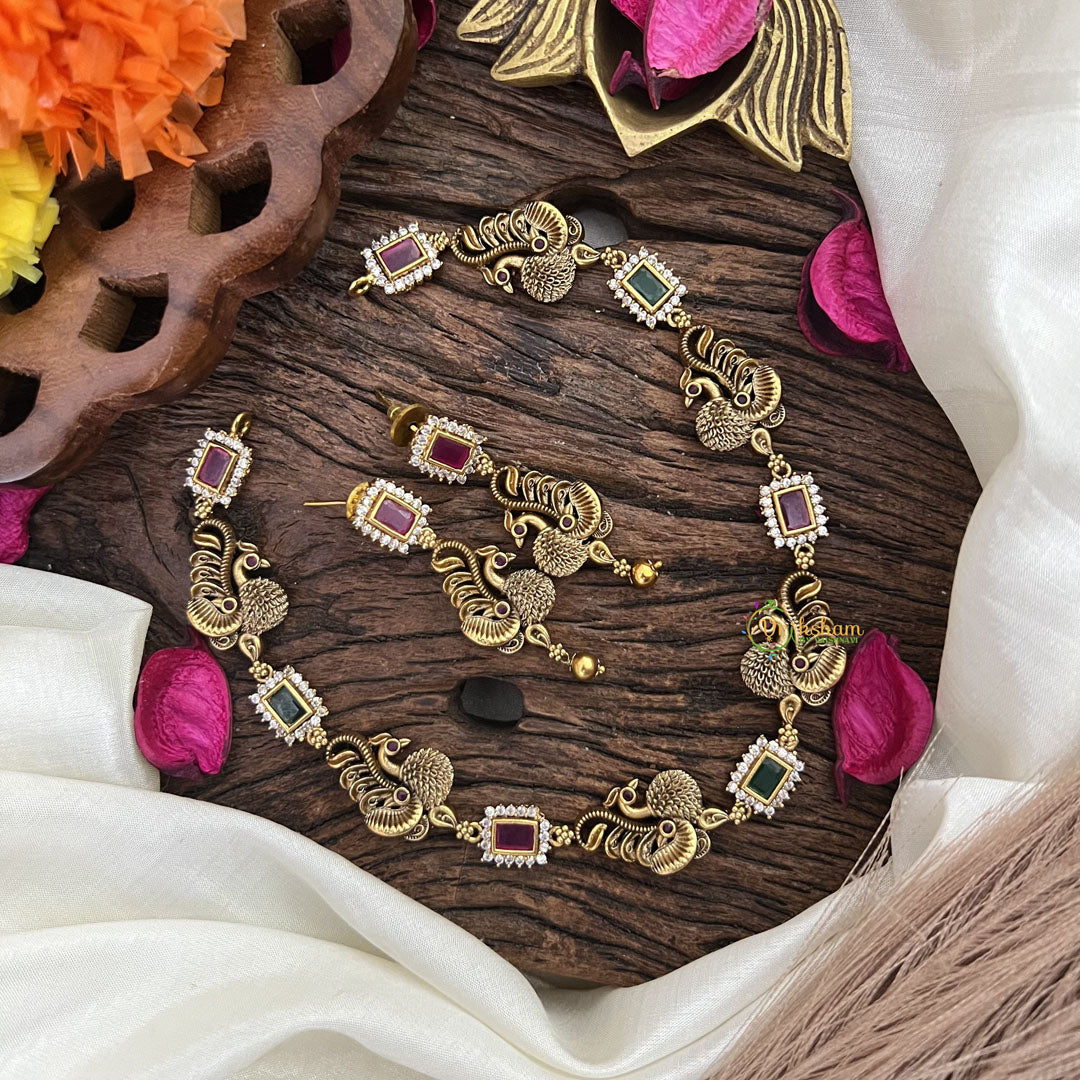 Premium AD Stone Short Neckpiece - premium quality polish and imitation stones neckpiece, comes with matching earrings.