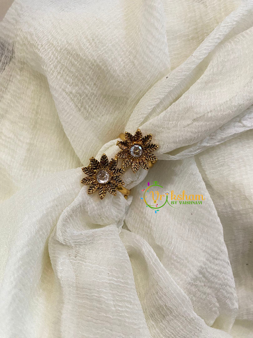 Premium AD Stone Toe Rings - Sunflower-White Stone shaped stone studded toe ring, antique look polished traditional modern toe rings.