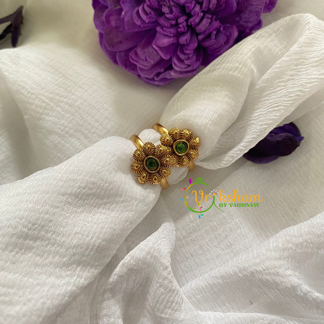 Premium AD Stone Toe Rings -Spiked Flower-Green-G7533