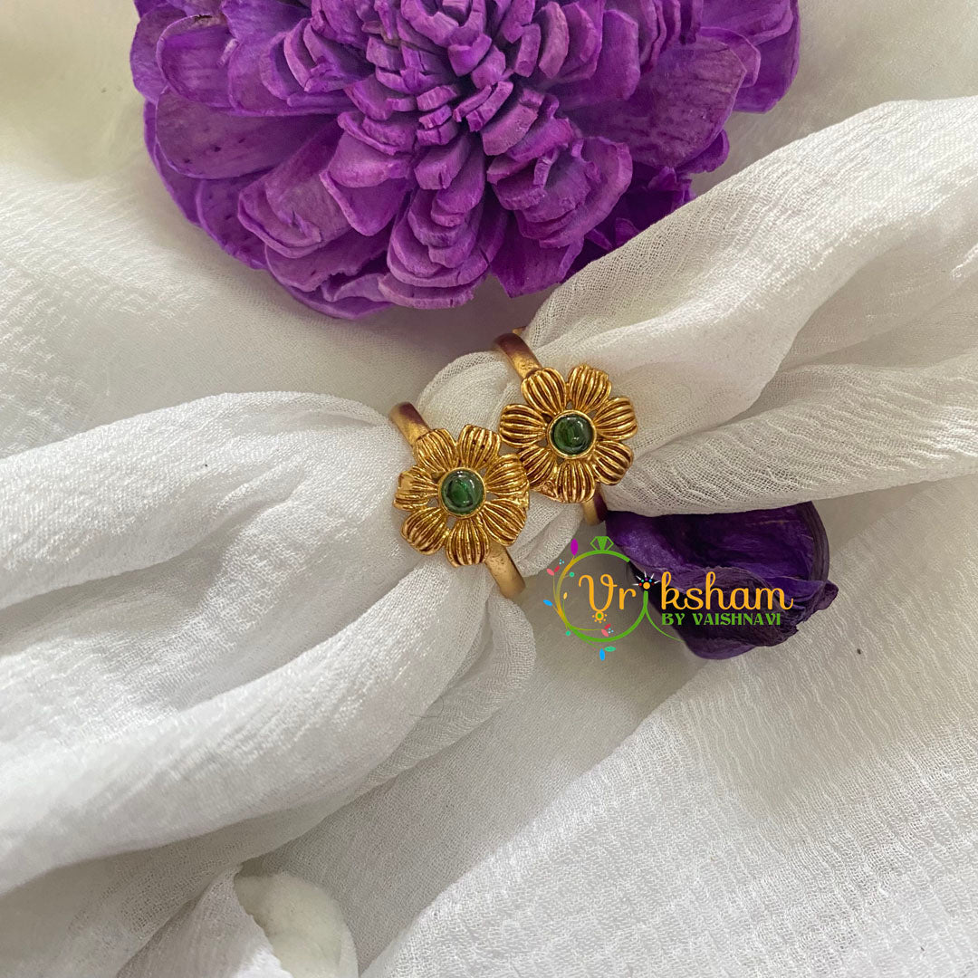 Premium AD Stone Toe Rings -Flower-Green-G7541