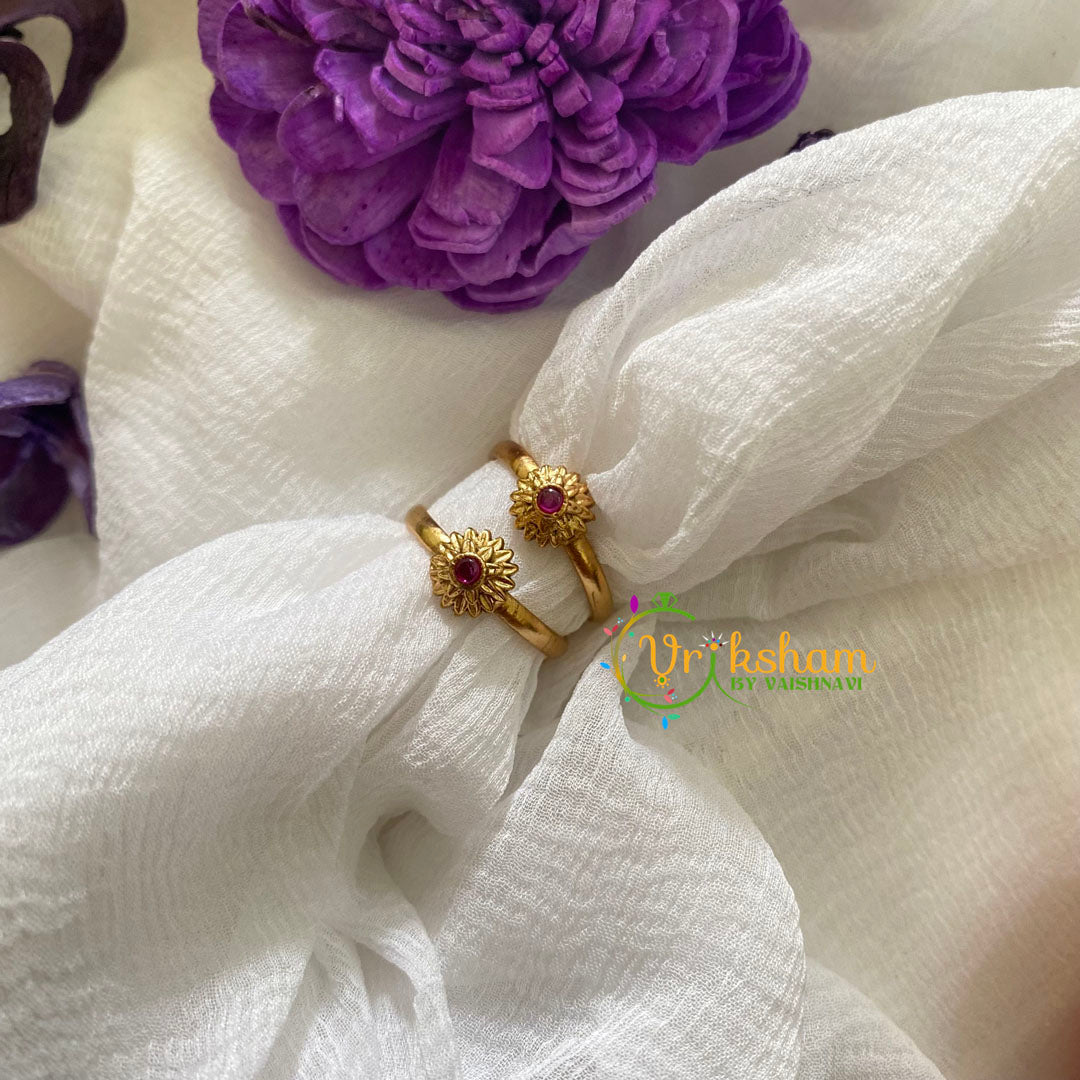 Premium AD Stone Toe Rings -Flower in flower-Red-G7545