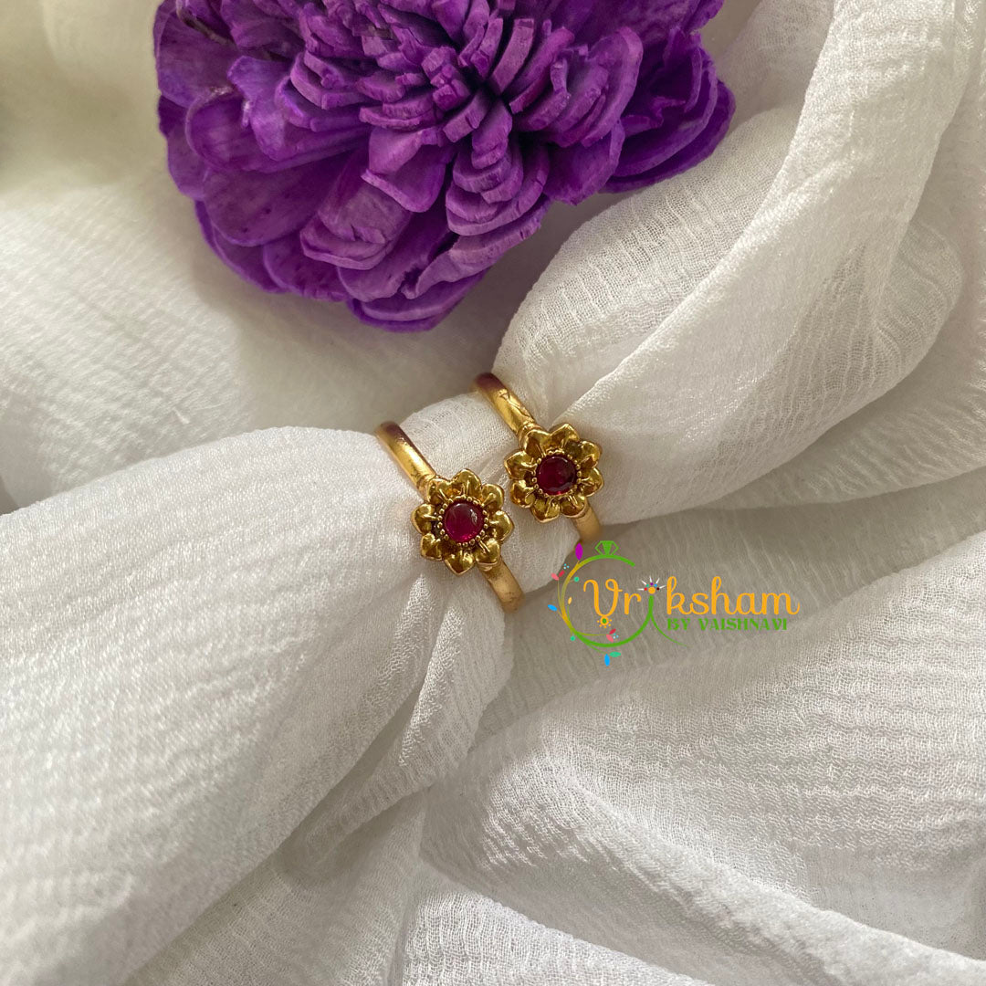 Premium AD Stone Toe Rings -Floral Red-G7572