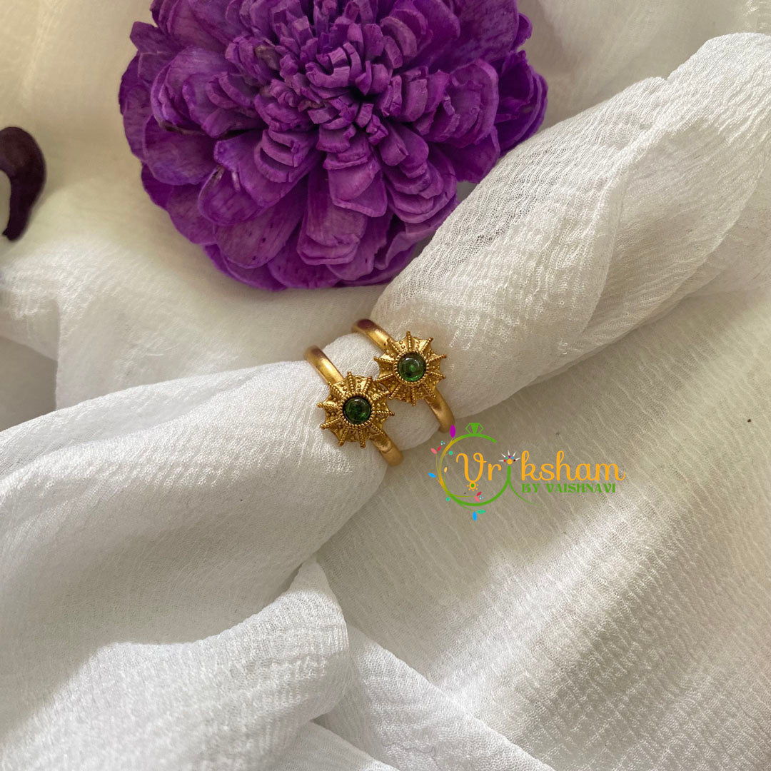 Premium AD Stone Toe Rings - round shaped stone studded toe ring, antique look polished traditional modern toe rings.