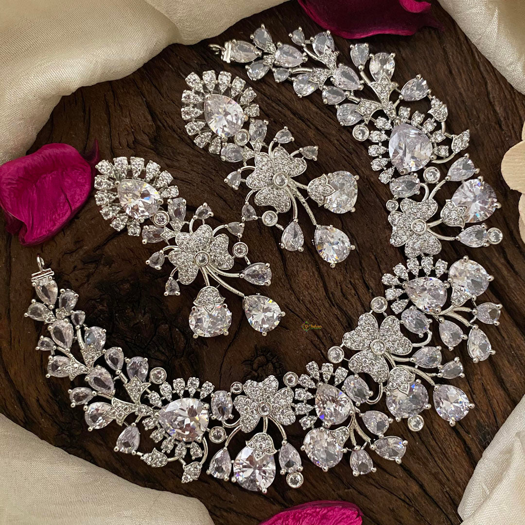 Introducing our exquisite Premium American Diamond Short Neckpiece in the delicate hue of White - a true gemstone of sophistication and elegance. Elevate your style with this luxurious and exclusive piece, crafted with the finest materials and intricate details reminiscent of the world of art, literature, and fashion. Perfectly complement any ensemble, creating a refined and tasteful look. Comes with matching stone ear hangings.