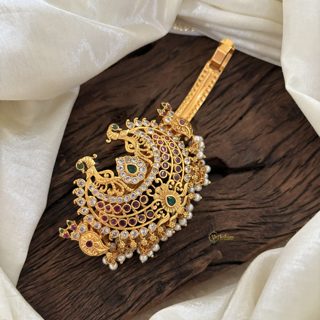Gold Look Alike AD Stone Hair clip - Temple hair clip for festive braids and hairstyling.