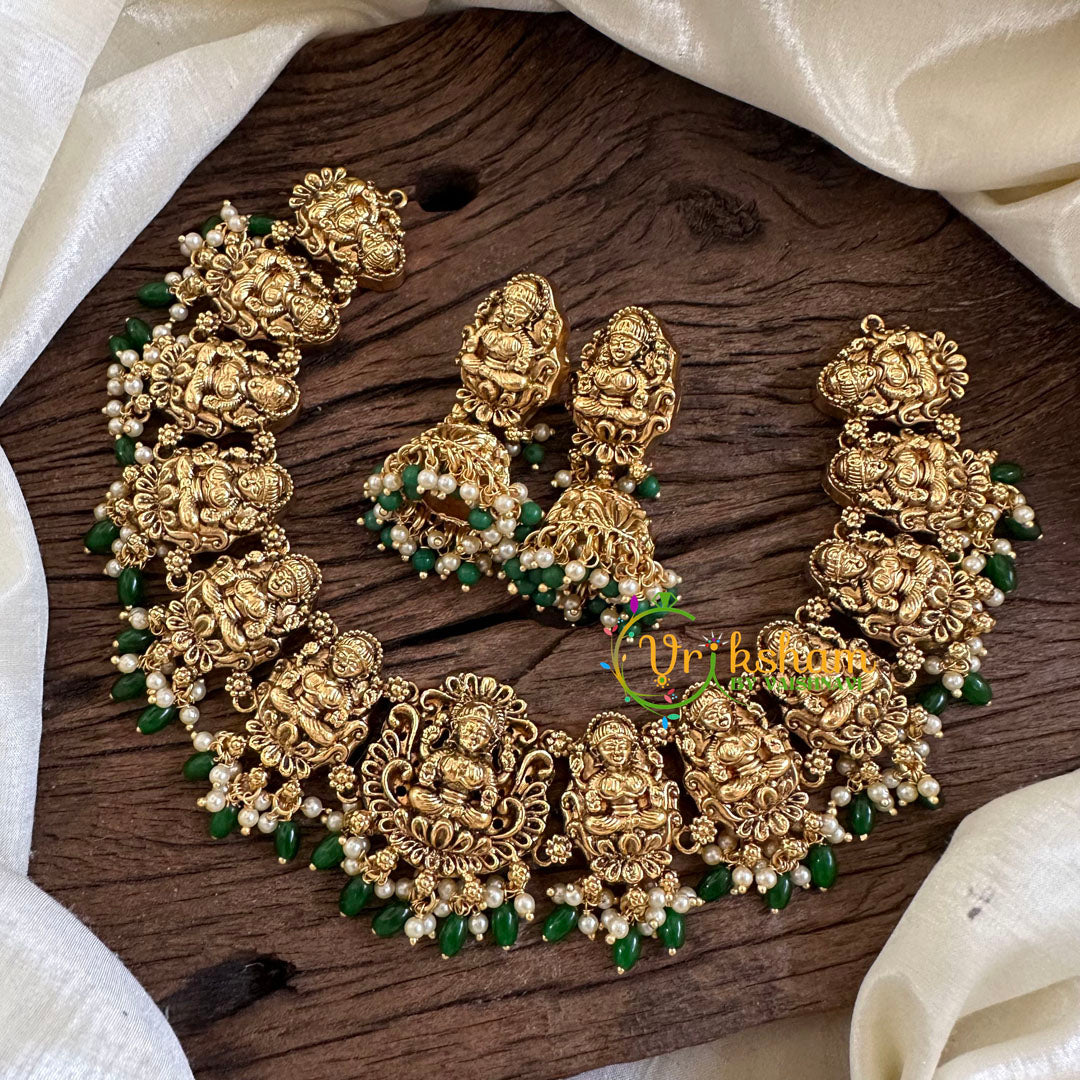 Premium Antique Lakshmi Choker Short Neckpiece - NO imitation stone studded premium gold alike polish and finish choker/short neckpiece; come with earrings.
