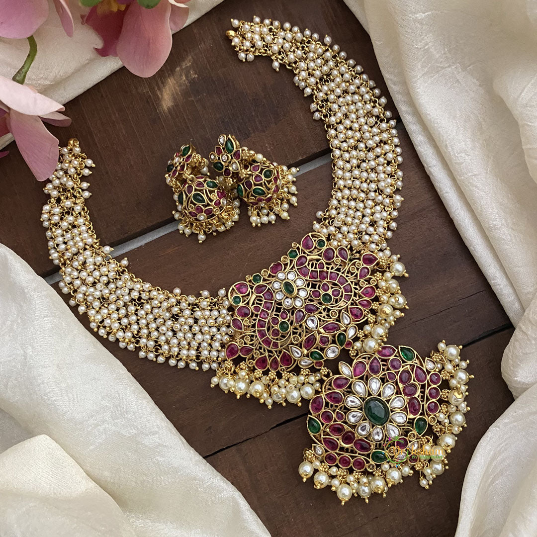 Indulge in ultimate elegance with our Premium Cluster Pearl Kemp Short Neckpiece! This stunning piece features a cluster of lustrous pearls, radiating sophistication and charm. With its premium design and quality, it's sure to add a touch of glamour to any outfit. Elevate your style with this must-have accessory today!